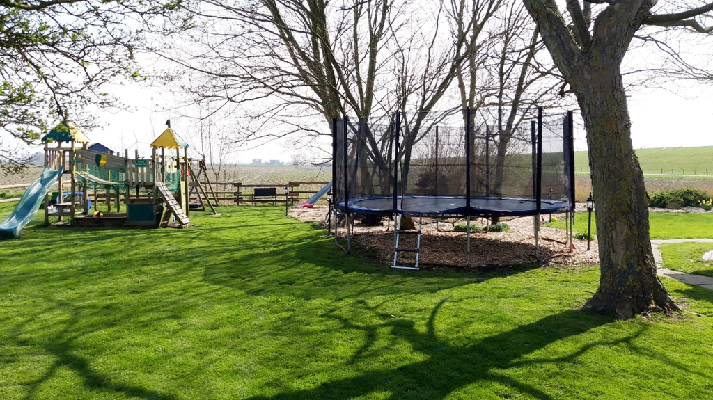 Für die Kinder stehen in unserem großem Garten ein großer Spielplatz mit 2 Rutschen, 4 Schaukeln und einem großen Kletterturm, Sandkasten, Bobbie Cars, Dreirad, Trettrecker, Kettcar, Dinocars mit Anhänger für die etwas Größeren oder Erwachsenen, ein großes Trampolin mit Netz, ein Kicker und eine Tischtennisplatte bereit.